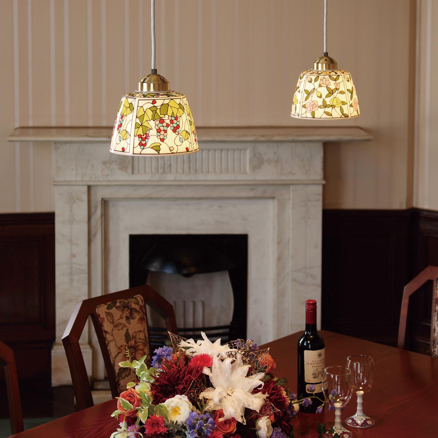 ●ライトを消している時は、しっかりとした存在感のあるデザインを楽しめ、ライトを灯すとまるでステンドグラスのような、幻想的な絵柄が空間を素敵に彩ります