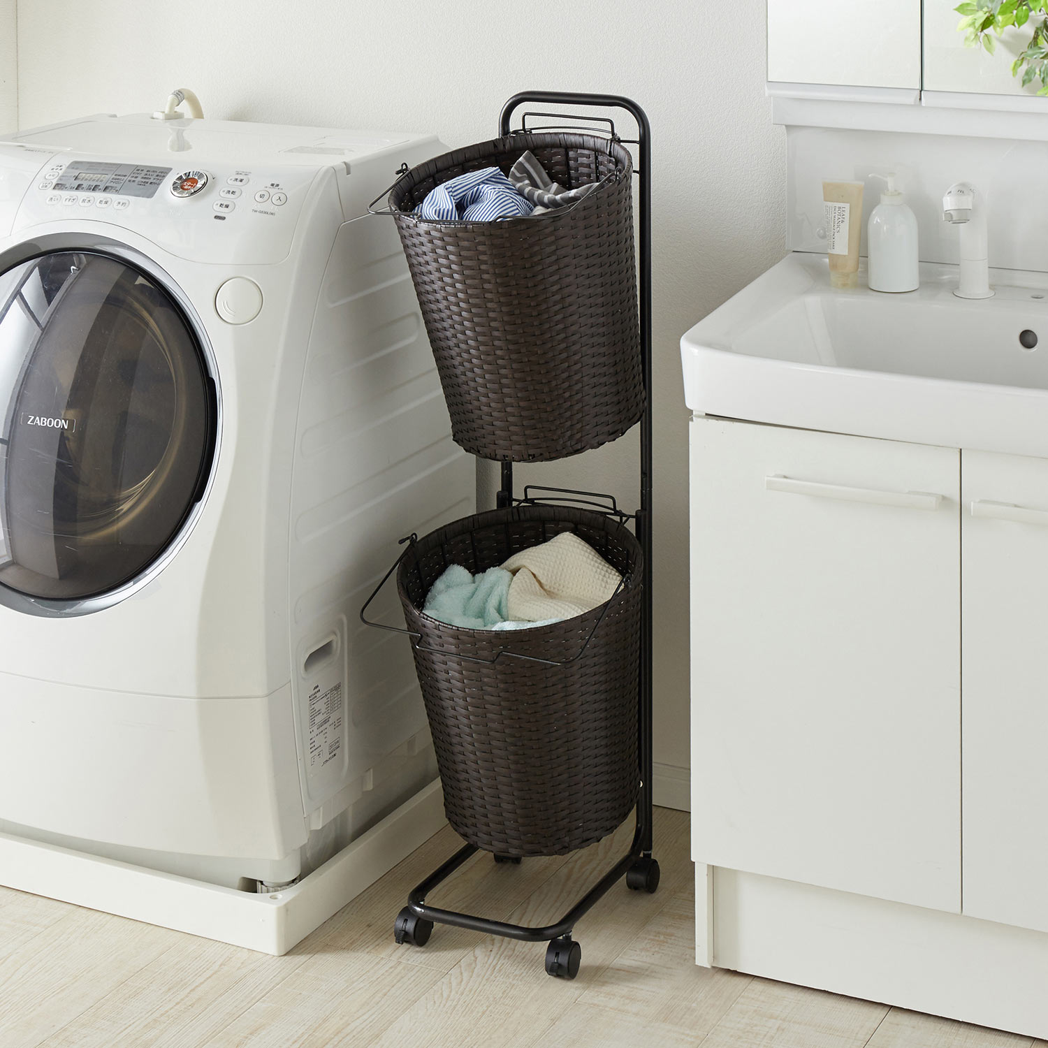 ●洗面所まわりに置いてもおしゃれなランドリーバスケットラック