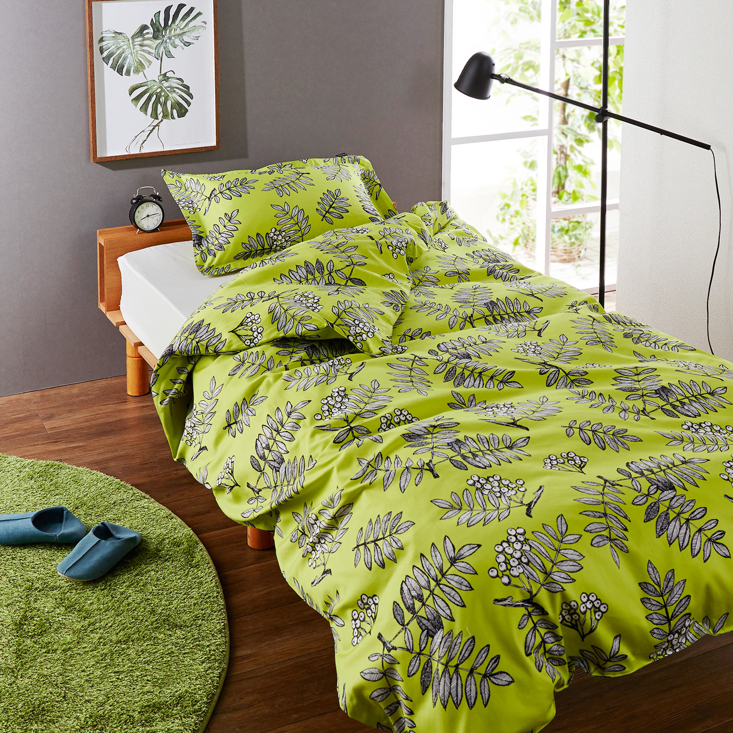 ●暮らしを彩るファブリックと生活雑貨のブランド「garb casa ガーブカーサ」の掛け布団カバーと枕カバーのセット ●北欧のテキスタイルデザイナーが手掛けたスタイリッシュなデザインがポイントです ●オリーブグリーンをベースに、黒で描いた植物柄がシックでおしゃれ ●綿100%のサテン生地はしっかりと高級感があります ●生地は日本で織り、プリントをほどこした安心のクオリティー