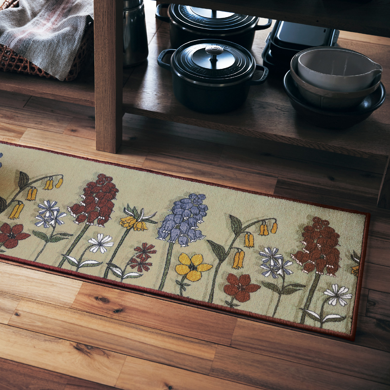 優雅な花モチーフでキッチンの足元を一新