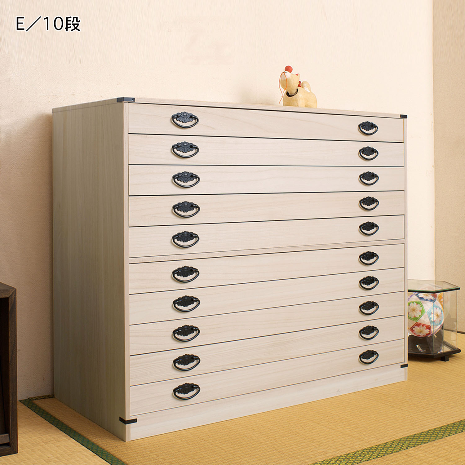 このタイプのチェストを選ぶ場合には、自分の身長に合う高さのものを選ぶことが重要です。自分の身長に合わない高さのチェストを選んでしまうと、上の方の引き出しに何が入っているか見えづらくなってしまうため注意してください。 |