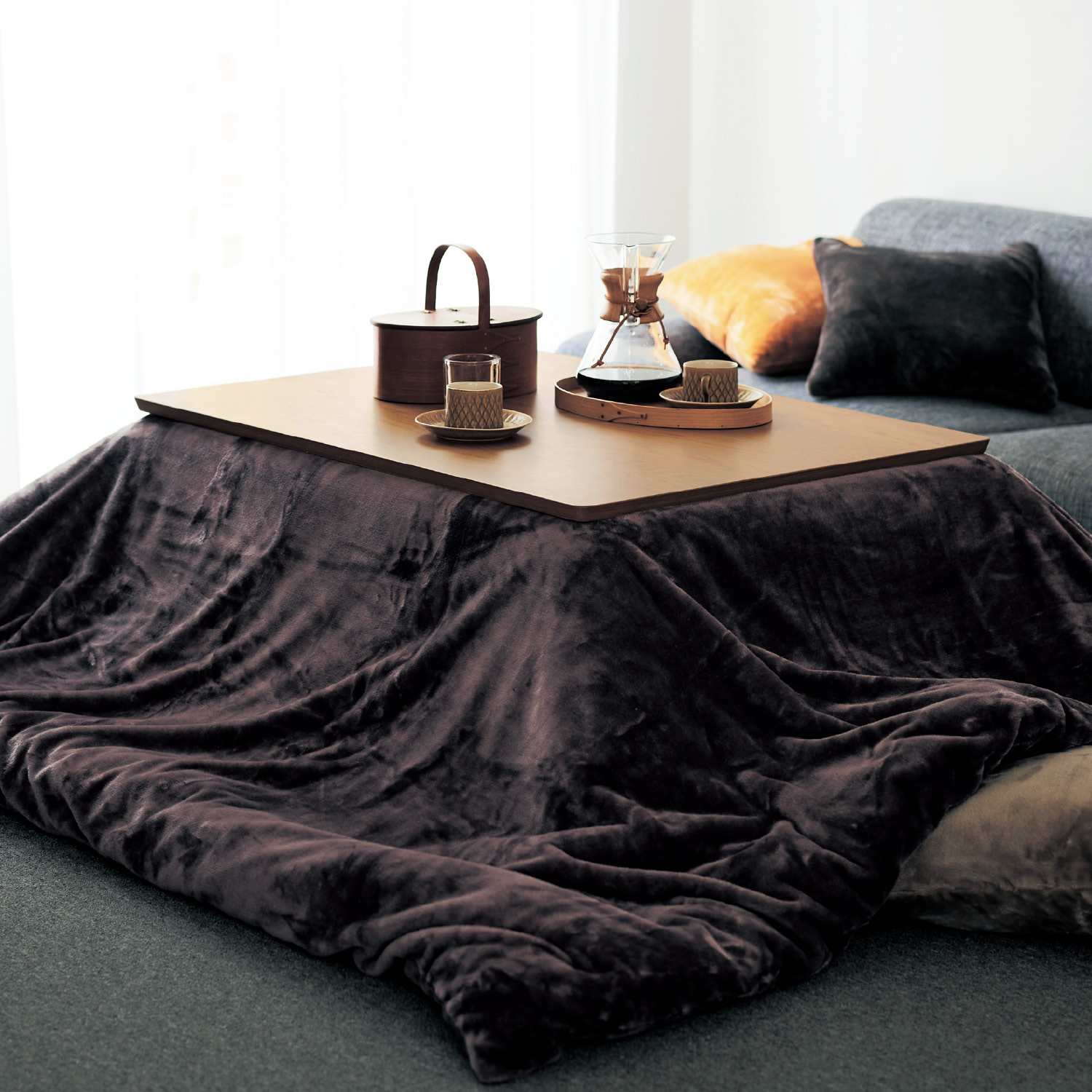 定番の正方形から、長方形や円形のものまで種類が豊富な「こたつ掛け布団」。最近では北欧柄・リバーシブルなどおしゃれなものも続々登場しています。 |